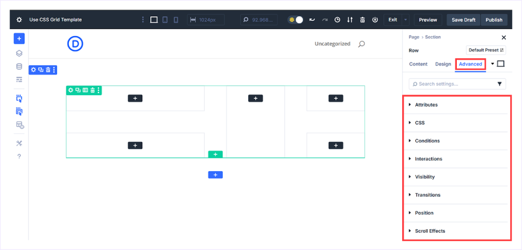 Divi 5 makes working with CSS Grid incredibly easy with its visual editing experience. Everything is customizable right inside the Divi visual builder.