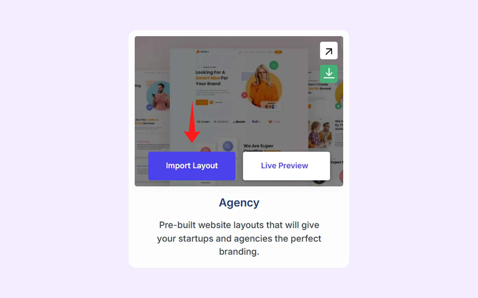 Step 4: Hover over “Agency” layout and click on “Import Layout” to start the import process.