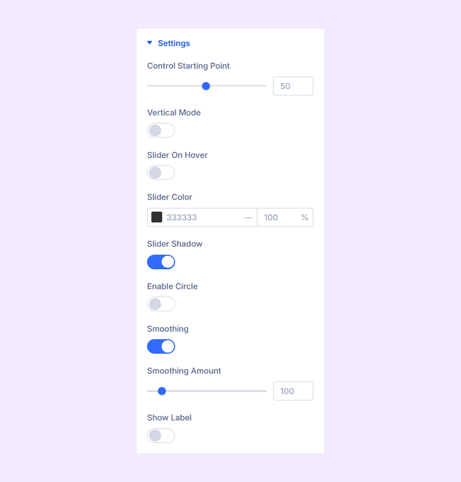 - Smoothing: Enable smooth movement while dragging the slider.