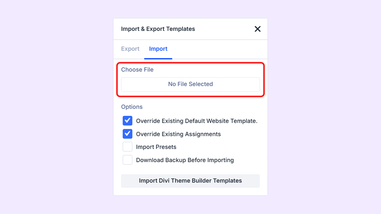 - Finally, click on “Import Divi Theme Builder Templates”.