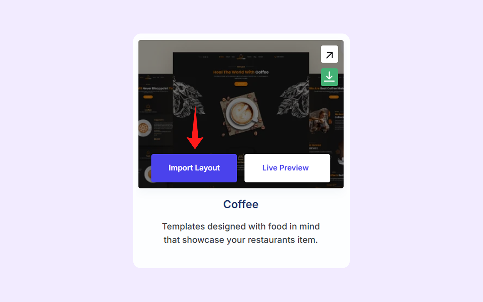 Step 4: Hover over the Coffee layout and select “Import Layout.”