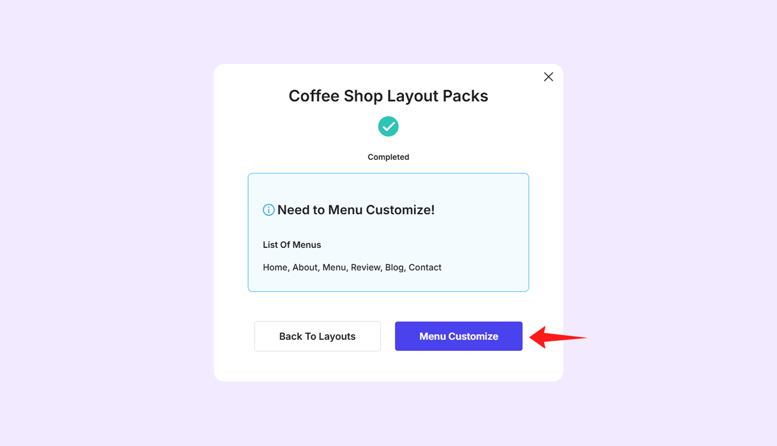 - Afterward, click “Menu Customize” to adjust the menu for the layout. Follow Divi Layout Menu Customization guide.