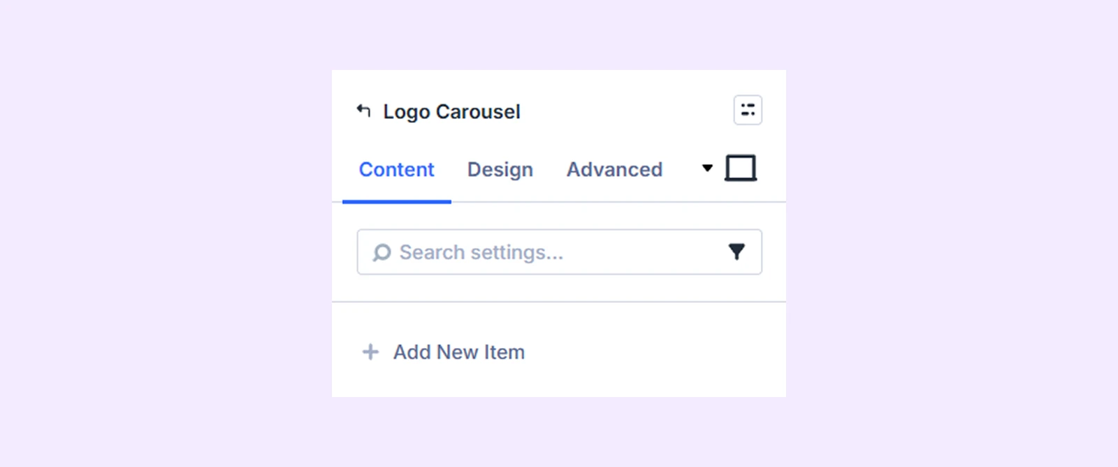 Click the + Add New Item button to add a new logo slider to the carousel. This opens the Logo Carousel Item Settings, where you can upload logos and customize individual settings. To learn more about adding content to logo sliders, click here.