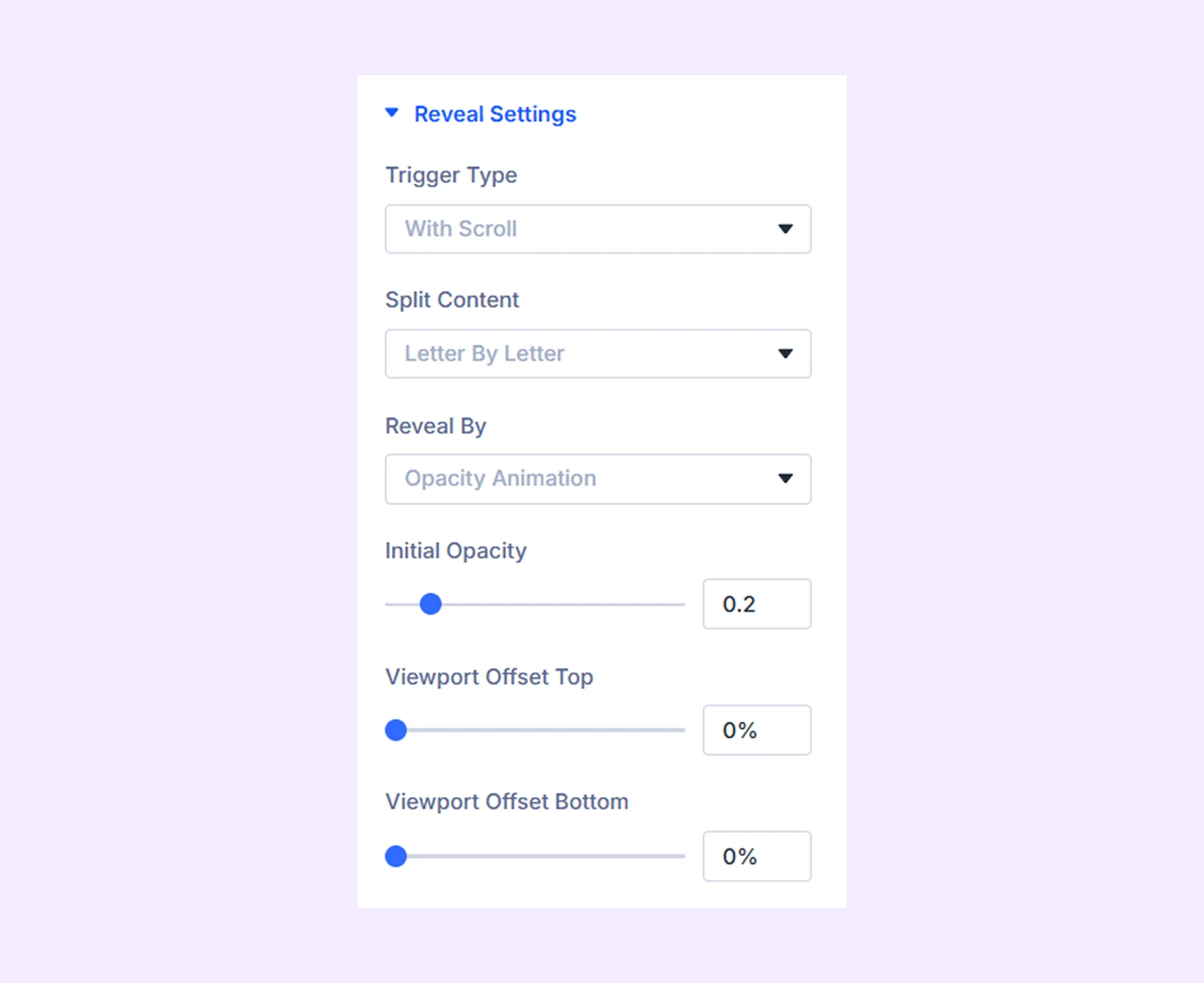 - Initial Opacity: Set the starting opacity of the text before the reveal animation begins.